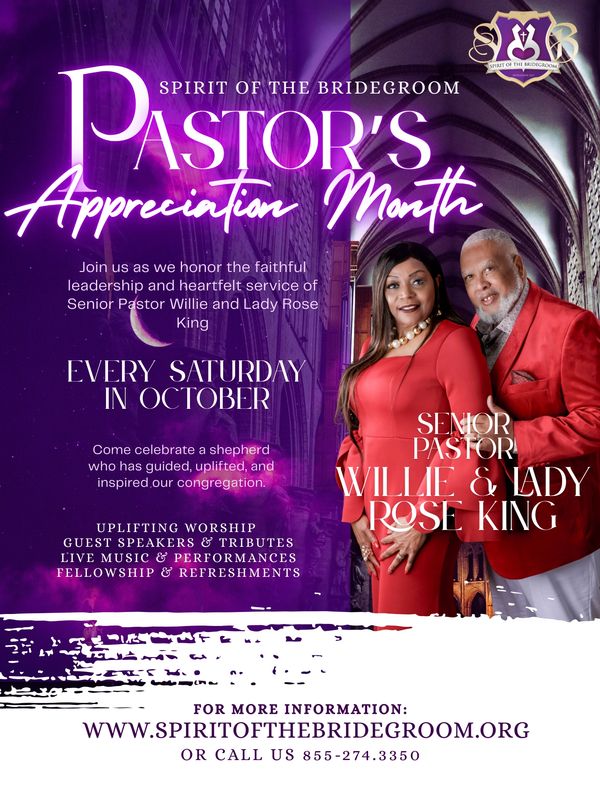 Join us all month for Pastor’s Appreciation—Saturdays at 7 PM, with the grand finale on Sunday at 11 AM